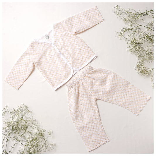 Beige Paisley Cotton Co-Ord Set Full Sleeves